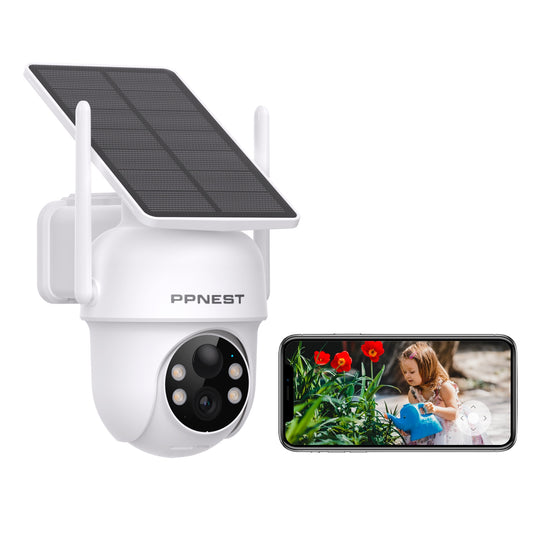 Solar Security Camera Outdoor Wireless, 2.4GHz WiFi Cameras for Home Surveillance with Fixed Solar Panel, Battery Powered 360°PTZ, PIR Motion Detection, 2K Color Night Vision, Human Auto Tracking