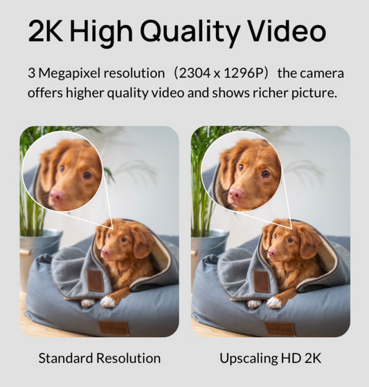 2K High Quality Video,360°All Round Coverage Protection. Night Vision, 2 Way Audio, Smart Human/Pet Detection.
